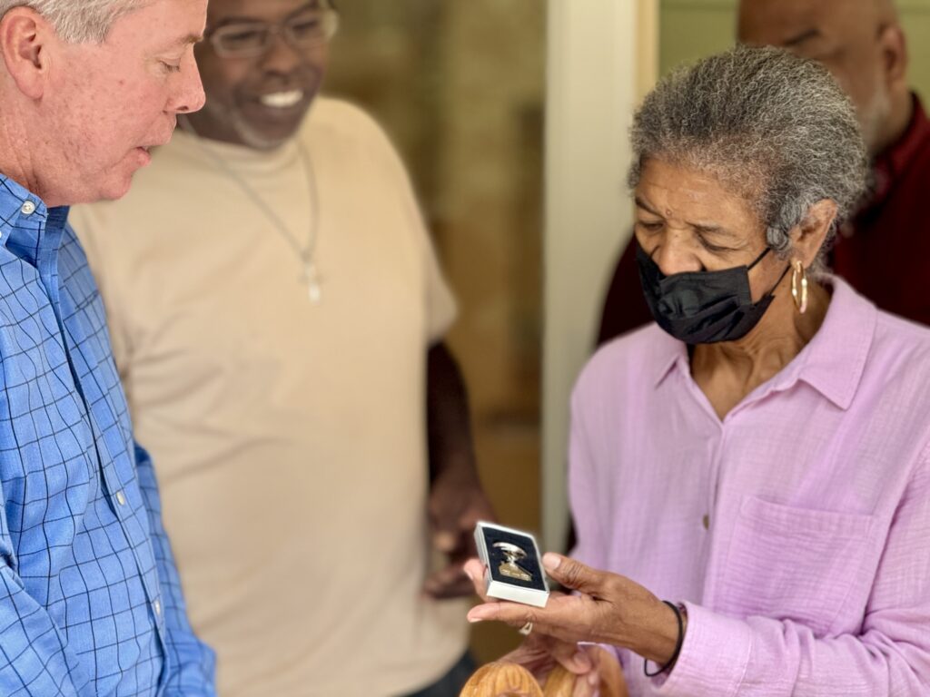 The ceremony featured remarks from city officials, including Mayor Scott James Matheson, who presented Mrs. Thomas with the key to her new home. In attendance were City Manager Richard Hardy, Assistant City Manager Catherine Ammons, Councilwoman Vivian Miller-Cody of District 1, and Councilwoman Sandra Tooley of District 2. Following the ribbon-cutting, attendees, including family and community members, toured the reconstructed home.