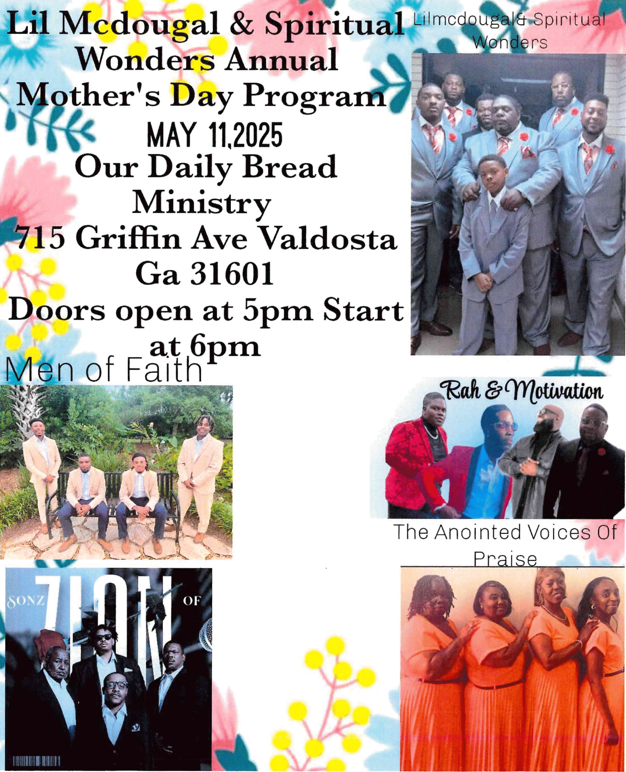 VALDOSTA – Lil Mcdougal & Spiritual Wonders announces the Annual Mother’s Day Program featuring multiple performances.