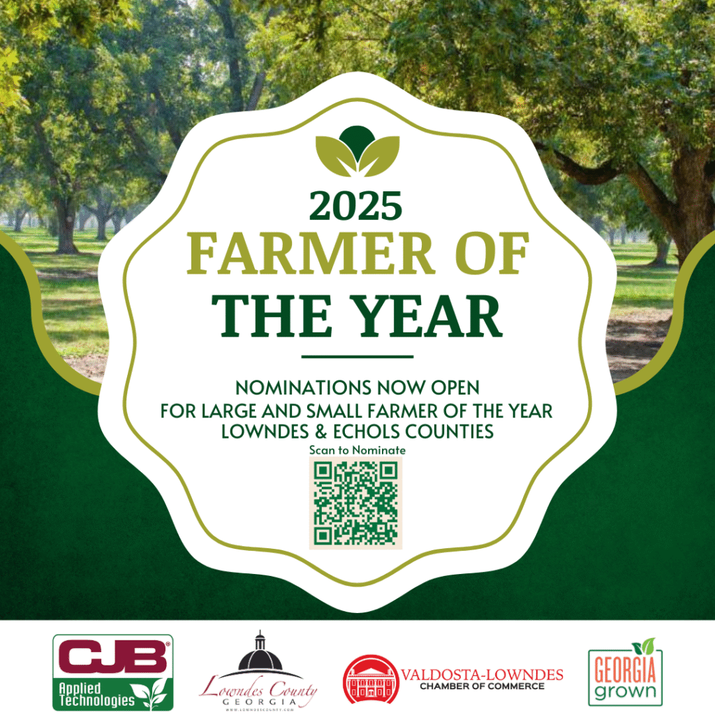 Nominations for Farmer of the Year are now being accepted. The deadline to submit nominations is Tuesday, October 31, 2025. Any community member may nominate a farmer who lives and farms in Lowndes or Echols Counties.