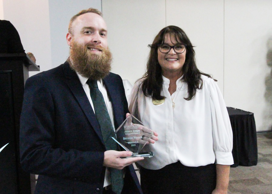 Brent Warren, Student Success Coordinator, was awarded the annual James A. Bridges Vanguard Award for the staff member of the year. Here is one of the many great things said about Brent in his nominations: “Brent has proven to be one of my go-to persons when an issue arises regarding a student who may be having some issues.  I can always count on his professionalism, demeanor, and knowledge of the One-Stop and the college to take care of the student(s).  He has proven himself to be reliable, technology savvy, and does an excellent job in follow-ups and offering ideas.  He is a strong asset to the One-Stop, the college, and the students.”
