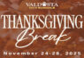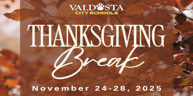 Valdosta City Schools will be closed November 24-28, 2025 for Thanksgiving Break. We will return to our normal school schedule on Monday, December 1, 2025.