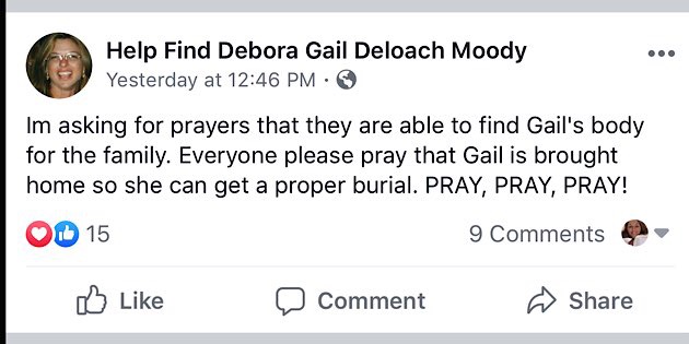 LUDOWICI, Ga. – On Saturday, June 22, 2019, a post on the Help Find Debora Deloach Moody Facebook page read:
