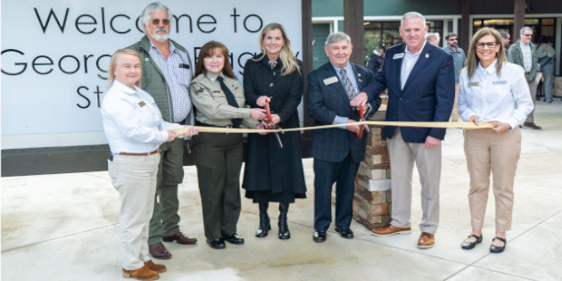 George T. Bagby State Park, located along the shores of Lake Walter F. George (also know as Lake Eufaula) in Southwest Georgia, celebrated renovations to its Visitor Center and the addition of overnight accommodations and new amenities for parkgoers. The ribbon-cutting ceremony brought together state and local leaders, including State Representative Gerald Greene who was instrumental in securing funding support through the legislature and Governor’s office.