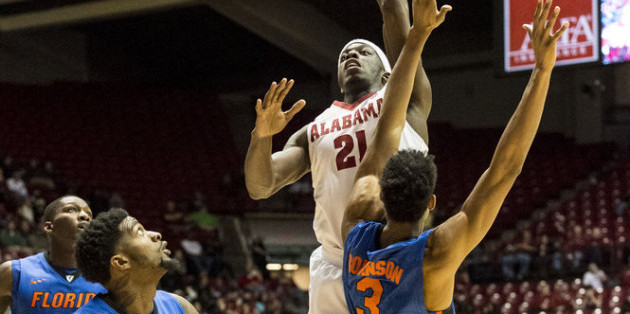 Alabama scored the first basket of the game and then Florida steadily pulled away to a 21-10 lead when Michael Frazier II made three free throws at the 6:14 mark. The Crimson Tide cut the margin to 25-18 when Shannon Hale canned a 3-pointer with 3:30 left. The Gators then closed with a 10-4 run to take a 35-22 advantage, their largest of the half, into intermission.
