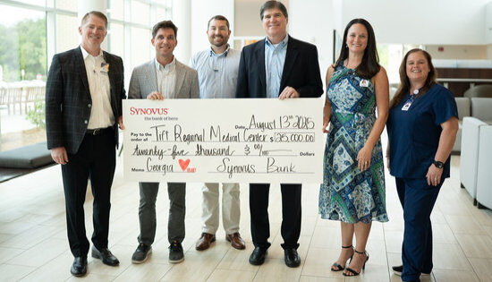 Photo L-R: Chris Dorman, Southwell President and CEO; Peter Crowley, Synovus Market President for Tifton; John Hamil, Synovus Retail Market Manager; Jody Patton, Synovus Division CEO; Claire Byrnes, Southwell Senior Vice President, Ambulatory Services; and…