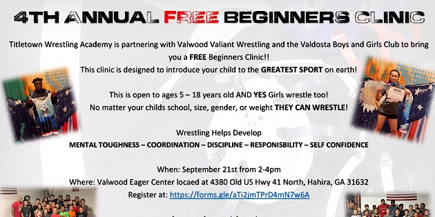 VALDOSTA, Ga. – TitleTown Wrestling Academy is partnering with Valwood Valiant Wrestling and the Valdosta Boys and Girls Club to off a free beginners clinic.