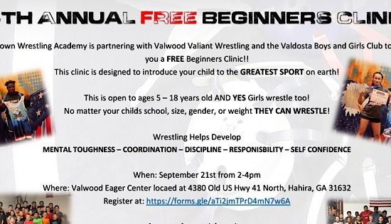 VALDOSTA, Ga. - TitleTown Wrestling Academy is partnering with Valwood Valiant Wrestling and the Valdosta Boys and Girls Club to off a free beginners clinic. This clinic will provide youth from ages 5 – 18…