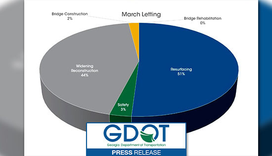 Press Release: Georgia DOT Awards nearly $109.4 Million in Construction Contracts for March ATLANTA, GA – Georgia Department of Transportation (Georgia DOT) awarded 15 construction contracts for statewide transportation projects totaling $109,380,895. The largest single awarded…