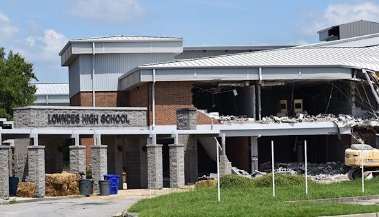 By Robin Postell LOWNDES - On Monday, July 1, 2019, demolition of Lowndes High School took out most of the A and B wings. The Lowndes High School Touchdown Club Facebook page captured the action…