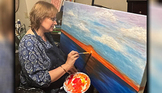 Photo: Beth Cundiff painting a landscape at home. VALDOSTA - An Annette Howell Turner Center for the arts student has rediscovered the love for art through painting classes. Release: Beth Cundiff has rediscovered her love…
